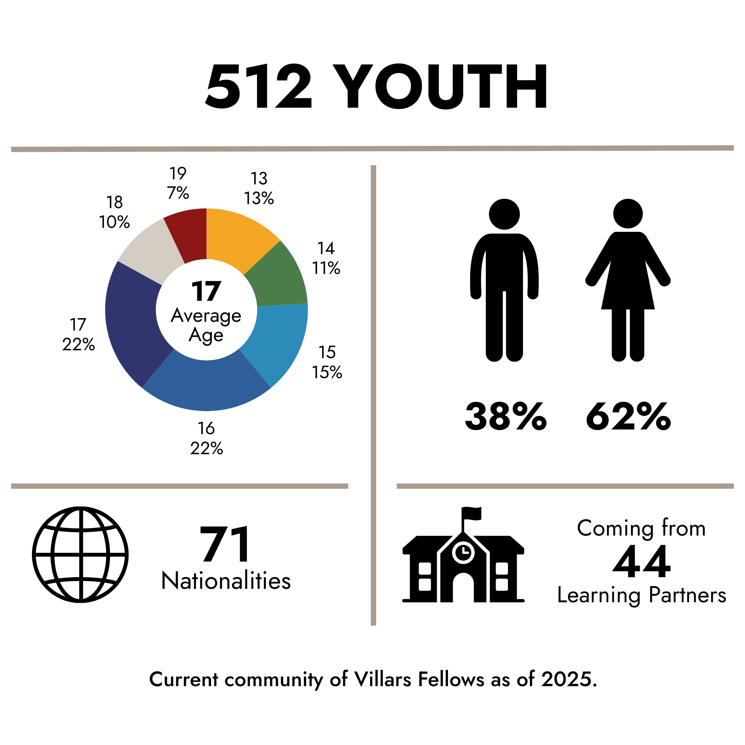 35% of Villars Fellows currently enrolled in university are attending institutions ranked among the top 100 universities worldwide.